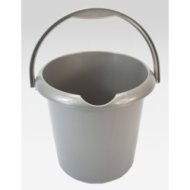 5 Litre round plastic bucket, integral pouring spout, contoured handle for firm, comfortable grip