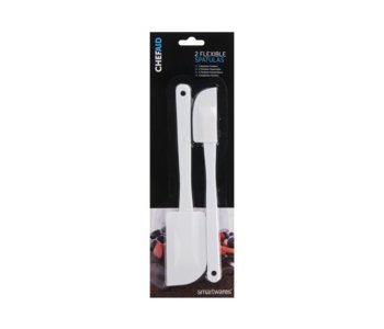A flexible spatula is a kitchen essential for easy scraping of bowls, jars and plates. These two flexible Chef Aid kitchen spatulas are heat-resistant and have easy-grip handles. They have just the right amount of flex for stirring and scraping in