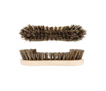 With natural tampico and bassine fibres Wooden handle Sticky label FSC certified Weighs 131 grams
