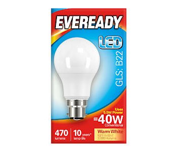 Eveready LED GLS 5.6w 470lm Warm White 3000k B22 s372300