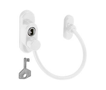 The cable restrictor is a durable plastic covered steel wire rope that restricts the opening of a window/door for safety and security purposes.