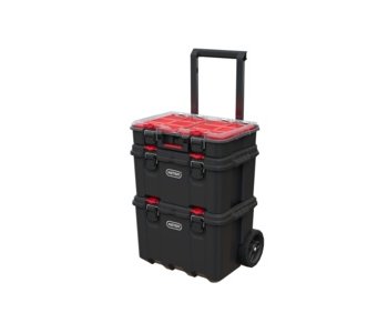 7" durable wheels, heavy duty metal latches with audible closing indication. Padlock eyelet for lockability (lock not included)
