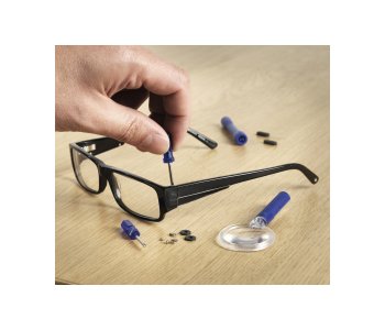 1 neck chord 1 magnifier 4 screws 2 grommets 2 nose pads 2 ear pads 2 screwdrivers 1 screwdriver handle
