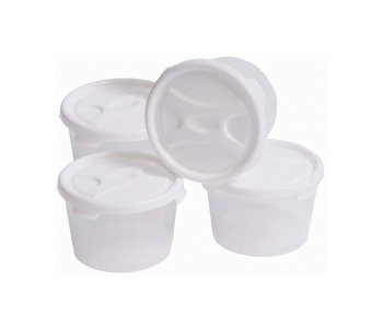 Good quality and hardwearing set of 4 handy food storage pots with lid Bases are clear to view contents easily Freezer, microwave and dishwasher safe and BPA free Ideal for picnics or food on the go